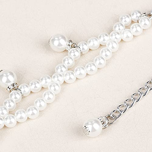 Felite Fnn Women 2 Rows Elastic Pearl Metal Belt with Tassels Evening Wedding Bridal Dress Waist Belt 7