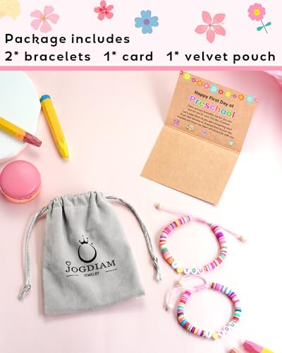 • 【First Day of School Gifts for Girls Daughter】Our first day of preschool mother daughter bracelets and a heartwarming message card come in an exquisite jewelry bag. It's a perfect gift set for your daughter, serving as a reminder that "If you feel nervous or stressed look at your tiny bracelet and know my heart will always be with you." What a thoughtful gift for her first day of preschool!