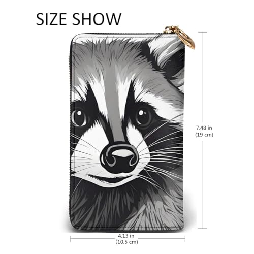 Cute Raccoon Prints Leather Long Clutch Wallet for Fashionable Girls and Women - Durable, Stylish, and Functional, Black, One Size 1