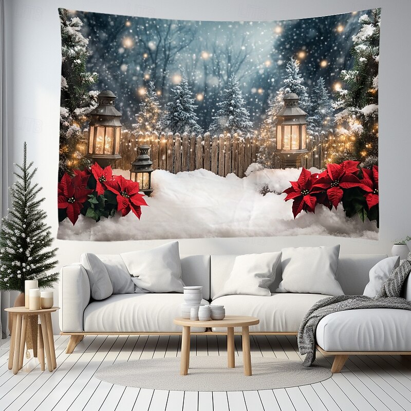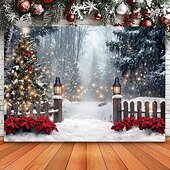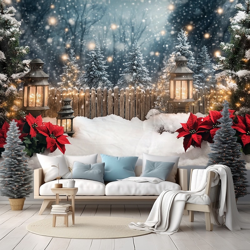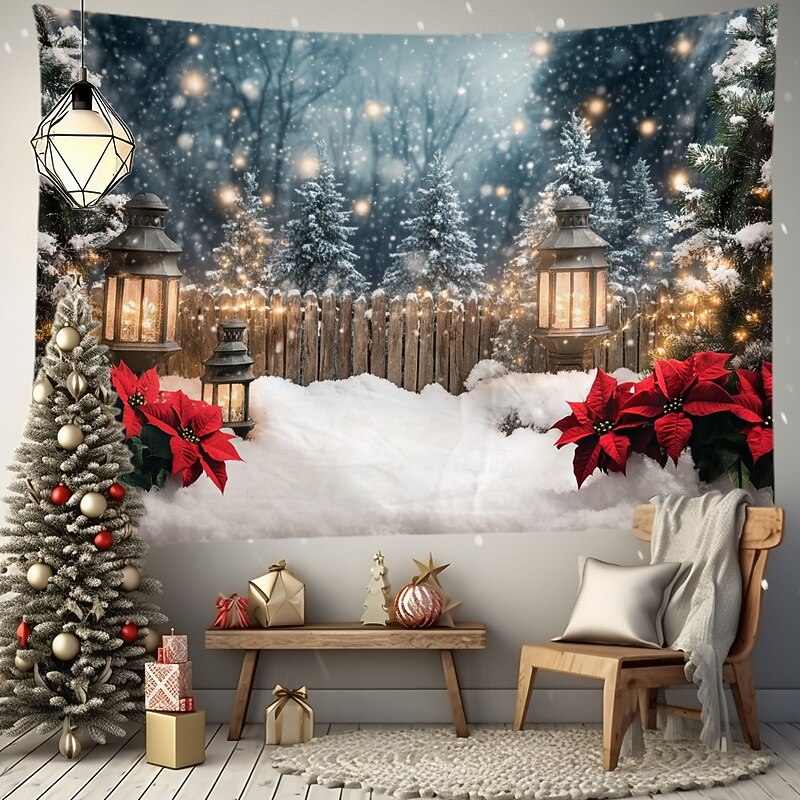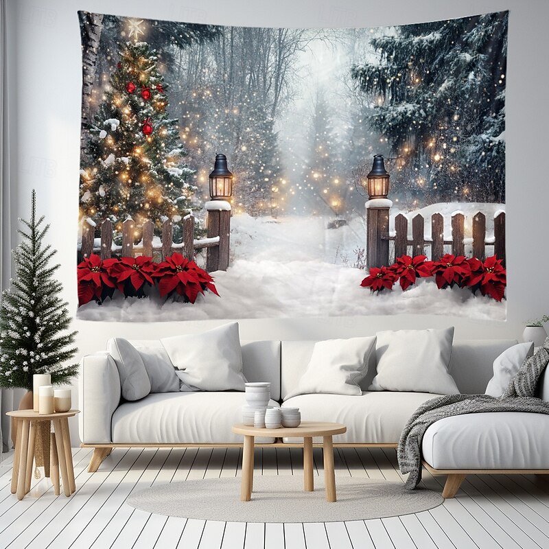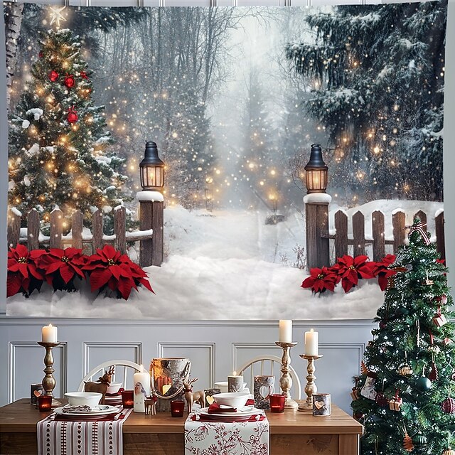 More information about Christmas Decorations Snow Gate Fence Hanging Tapestry Wall Art Large Tapestry Mural Decor Photograph Backdrop Blanket Curtain Home Bedroom Living Room Decoration