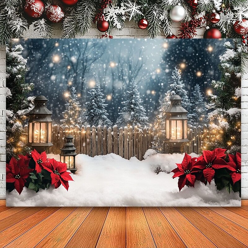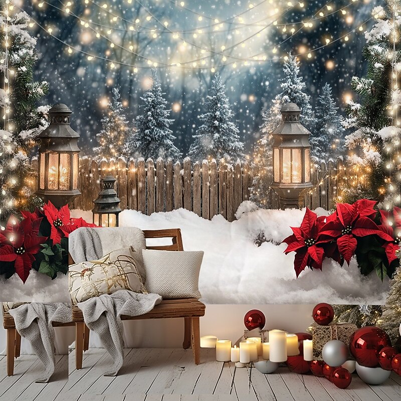 Christmas Decorations Snow Gate Fence Hanging Tapestry Wall Art Large Tapestry Mural Decor Photograph Backdrop Blanket Curtain Home Bedroom Living Room Decoration 18
