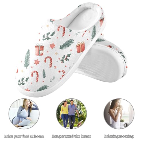 Fuzzy Memory Foam Slippers for Women/Men Candy Cane Gift Box Pattern Fluffy Winter House Shoes Indoor and Outdoor 5