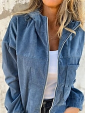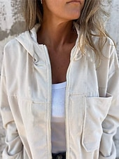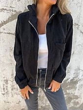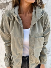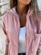 More information about Women's Casual Jacket Warm Comfortable Zipper Pocket Fashion Outdoor Plain Going out Weekend Zipper Regular Hooded Regular Fit Long Sleeve Outerwear Black White Pink Fall Winter