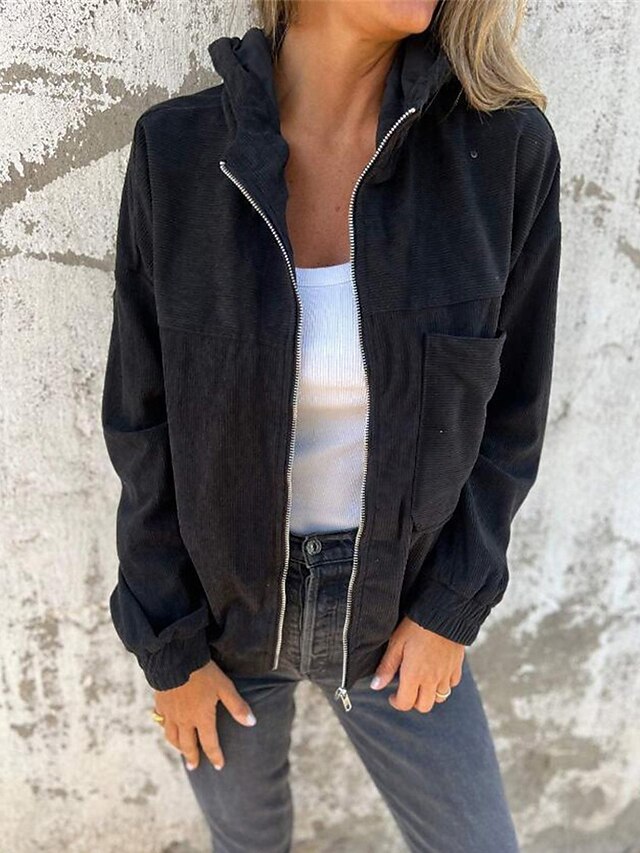 Women's Casual Jacket Warm Comfortable Zipper Pocket Fashion Outdoor Plain Going out Weekend Zipper Regular Hooded Regular Fit Long Sleeve Outerwear Black White Pink Fall Winter 11