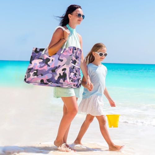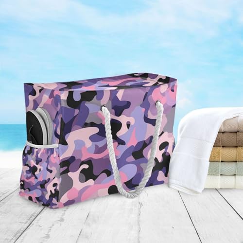 Camouflage Purple Pink Sandproof Bag For Women with side pocketes Travel Totes Bags with cup holders on side 6