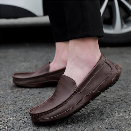 Round Toe Solid Color Leather Loafer Shoes Slip Resistant Flexible Lightweight Fashion Party Slip-ons 6