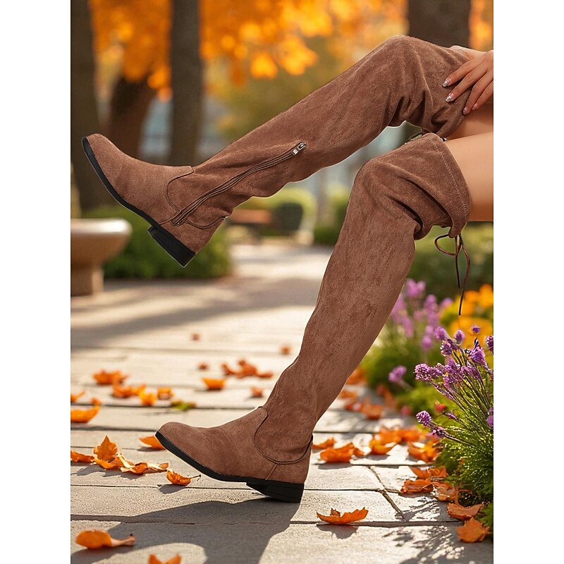 Women's Black Over the Knee Boots – Suede Flat Thigh High Boots with Side Zipper and Tie Back, Casual Fall Winter Shoes for Walking, Travel and Daily Wear 1