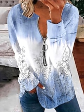 More information about Women's Pullover Sweatshirt Zip Up Sweatshirts Floral Graphic Fashion Casual Long Sleeve Crew Neck Regular Tops Street Dailywear Zipper Print Blue Spring Fall Winter