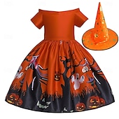 More information about Kids Girls' Party Dress Graphic Short Sleeve Special Occasion Princess Polyester Party Dress Summer Spring 3-10 Years Orange