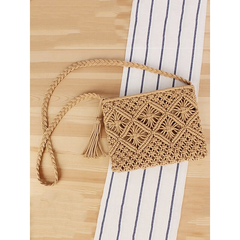 Highlights - Add a touch of elegance with a beautiful tassel embellishment - Crafted from high-quality straw for a chic and stylish look