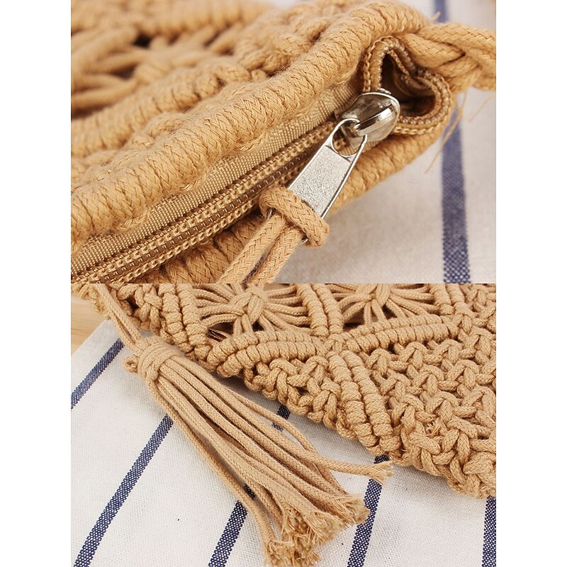 Women's Handwoven Boho Crossbody Bag – Vintage Macrame Shoulder Purse with Tassel for Beach Vacations and Casual Outfits Color Black White Pink 12