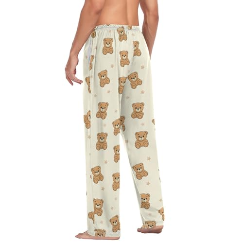 J JOYSAY Teddy Bear Star Beige Pajama Pants Mens Lounge Pants Lightweight Men Pajama Bottoms 1