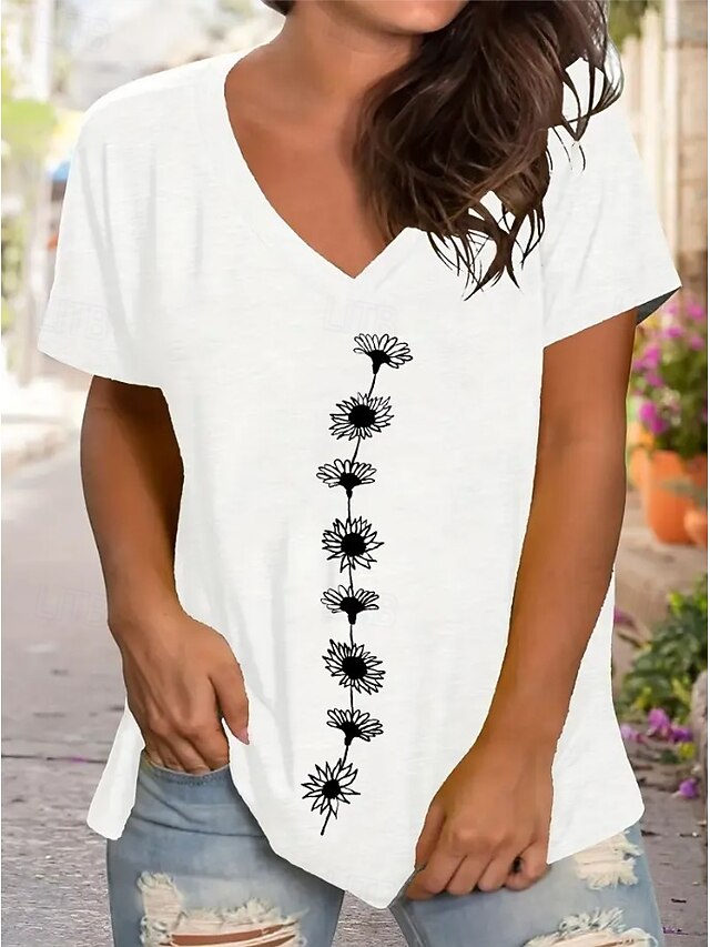 More information about Women's T Shirt Floral Graphic Plants Bohemia Vintage Stylish Short Sleeve V Neck Regular Tops Daily Going out Weekend Print Black White Gray Summer Spring