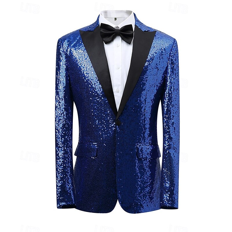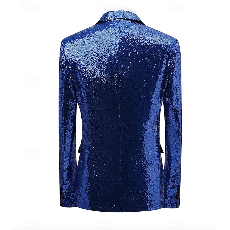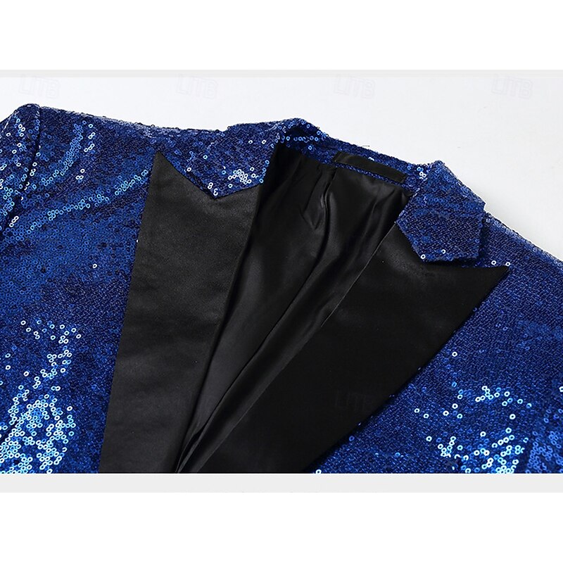 Retro Vintage 1980s Shiny Metallic Pants Tuxedo Suits & Blazers Sequins Slim Fit Fancy Dress Men's Carnival Costume Christmas Halloween Carnival Cocktail Party Theme Party Pride Parade Adults' Coat 1