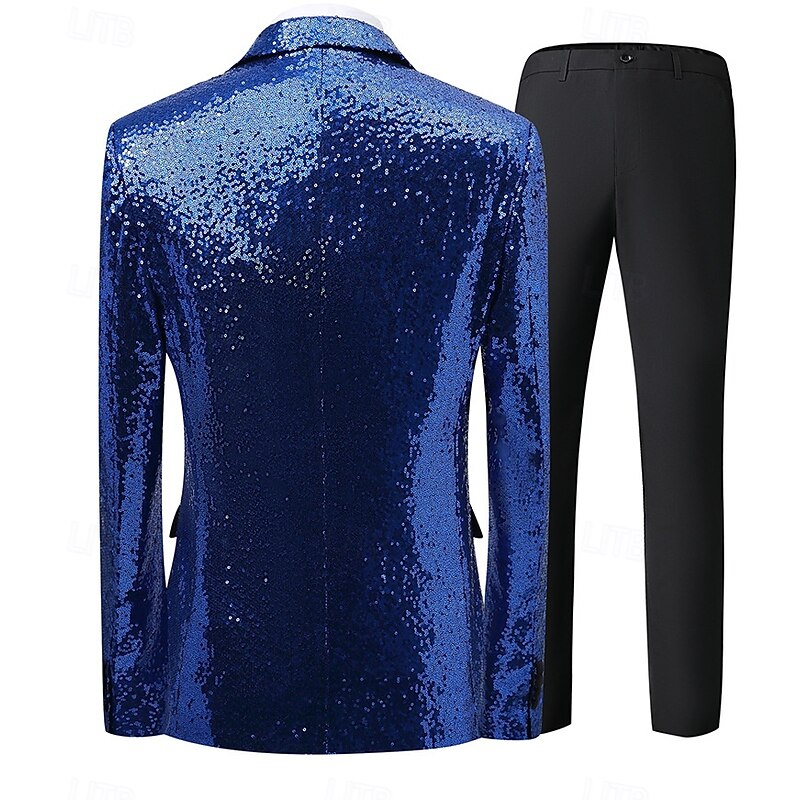 More information about Retro Vintage 1980s Shiny Metallic Pants Tuxedo Suits & Blazers Sequins Slim Fit Fancy Dress Men's Carnival Costume Christmas Halloween Carnival Cocktail Party Theme Party Pride Parade Adults' Coat