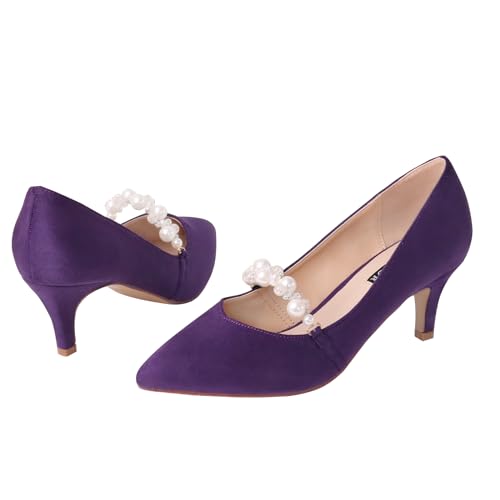 More information about ERIJUNOR E3122 Women Faux Suede Pearl Pumps Comfortable Kitten Heel Evening Prom Wedding Shoes