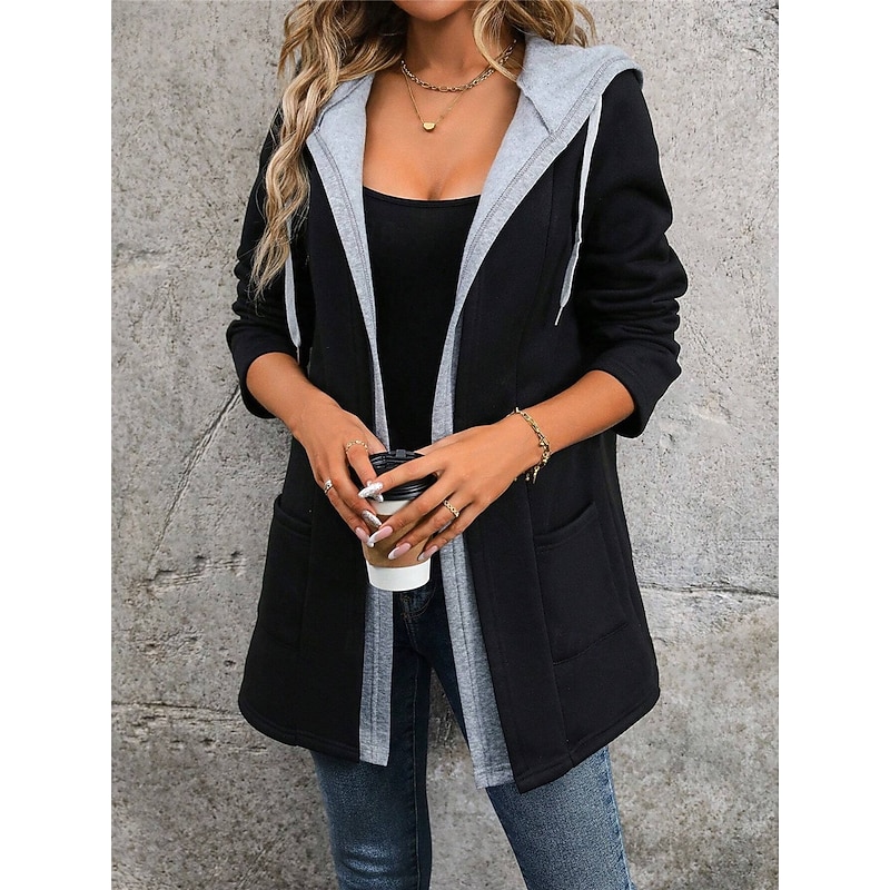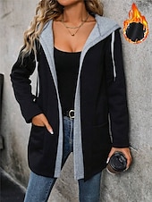 More information about Women's Casual Jacket Hoodie Jacket Outdoor Street Daily Wear Fall Winter Regular Coat Regular Fit Thermal Warm Breathable Stylish Casual Jacket Long Sleeve Plain with Pockets Black