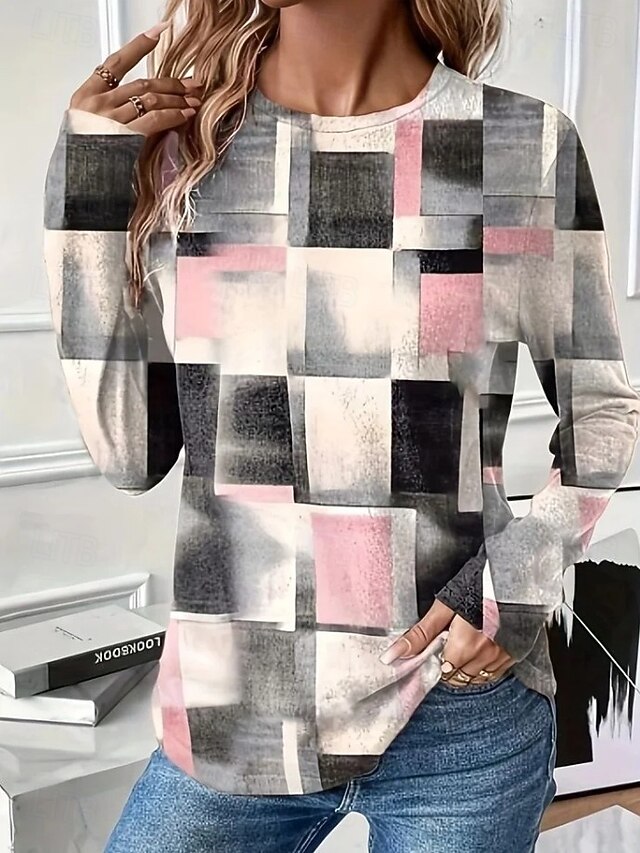 Women's T Shirt Graphic Vintage Stylish Classic Short Sleeve Long Sleeve Crew Neck Regular Tops Daily Print Black Pink Red Blue Purple Spring Fall Winter 13