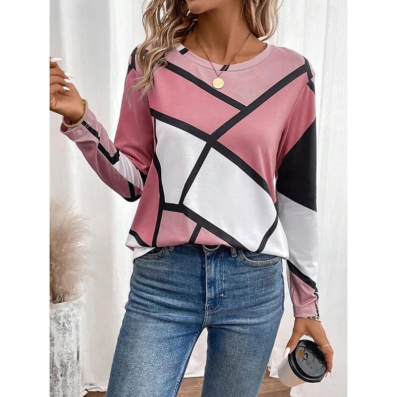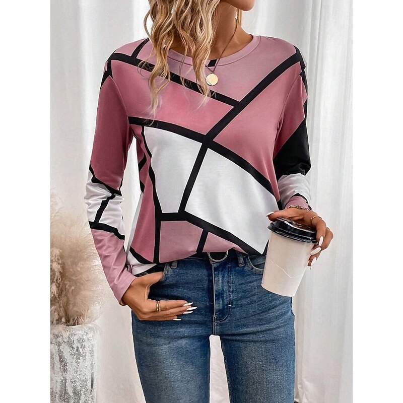 Women's T Shirt Graphic Vintage Stylish Classic Short Sleeve Long Sleeve Crew Neck Regular Tops Daily Print Black Pink Red Blue Purple Spring Fall Winter 25