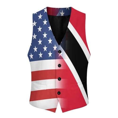 HOT ! USA And Trinidad And Tobago Flag Suit Vest for Men Slim Fit Sleeveless Jacket V Neck Business Waistcoat Button Up Dressy Top