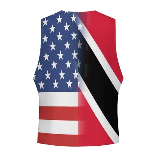 USA And Trinidad And Tobago Flag Suit Vest for Men Slim Fit Sleeveless Jacket V Neck Business Waistcoat Button Up Dressy Top 1