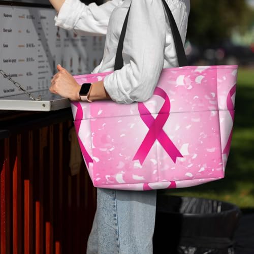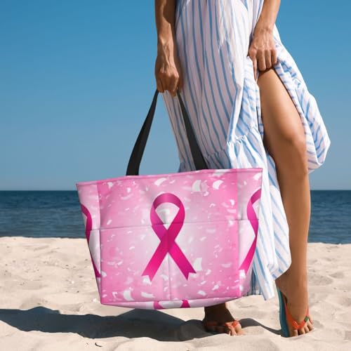 More information about Breast Cancer Awareness Pink Ribbon And Confetti Oversized Waterproof Beach Bag – Multi-Pocket Zipper Tote, Compact Foldable Design For Travel, Pool, Shopping & Outdoor Adventures