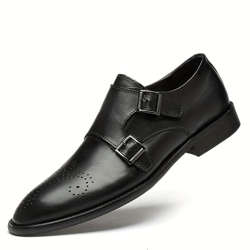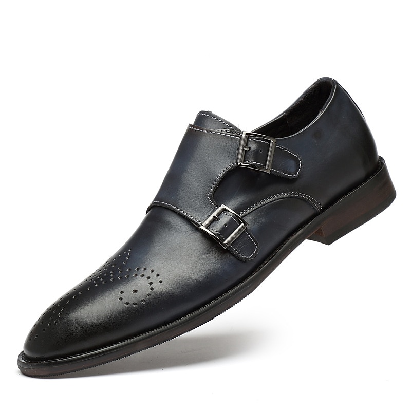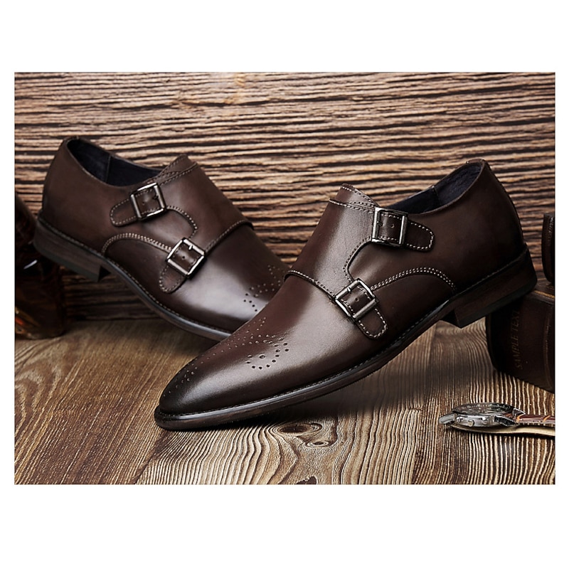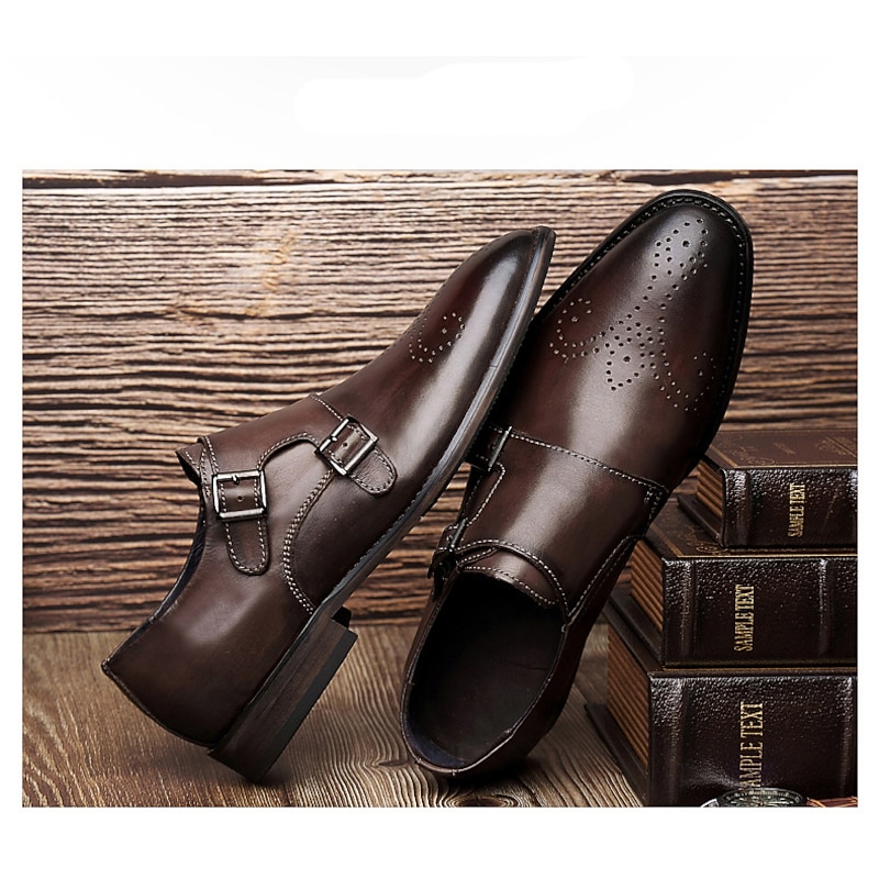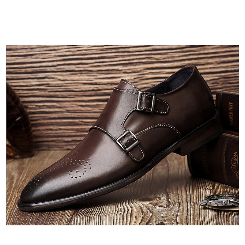 Highlights [Fabric and Craftsmanship] : Expertly crafted from high-quality leather, these men’s monk strap shoes showcase a classic elegance. The smooth leather upper offers a refined appearance, while the durable rubber outsole provides comfort and long-lasting wear. [Sophisticated Fit] : These shoes are designed with a sleek profile, featuring a round toe for a comfortable yet stylish fit. The standard sizing ensures you can select your usual size for a perfect fit. [Design Highlights] : Highlighting a timeless double buckle design with intricate brogue detailing, these shoes embody sophistication. The perforated designs on the toe cap add a subtle touch of style, making them stand out in any formal wardrobe. [Occasions] : Ideal for business meetings, office settings, evening parties, and formal occasions. Whether attending a corporate event or enjoying an elegant evening out, these shoes add a polished touch to any ensemble. [Size Range] : Available in an extensive size range from US6-6.5 to US12, these shoes cater to various fittings. Choose your usual size for the best fit and experience a blend of comfort and style in every step.