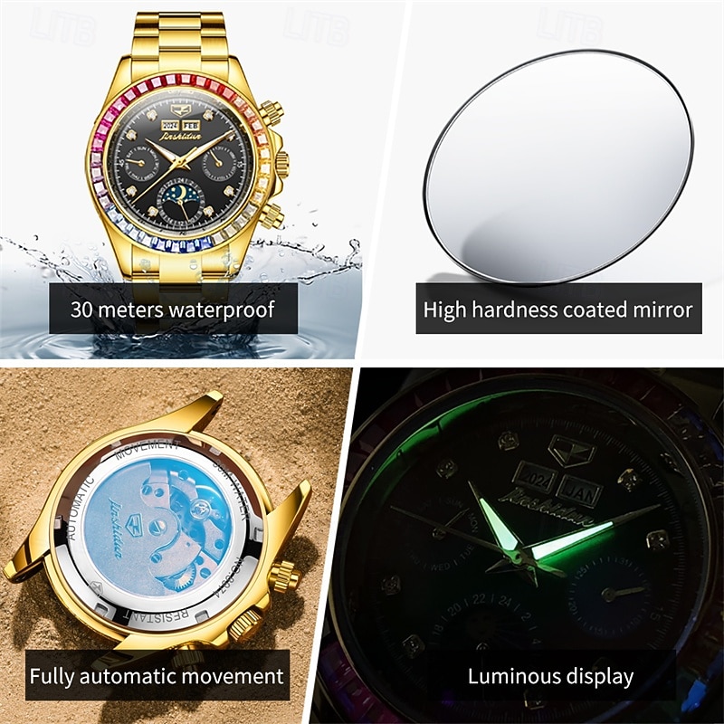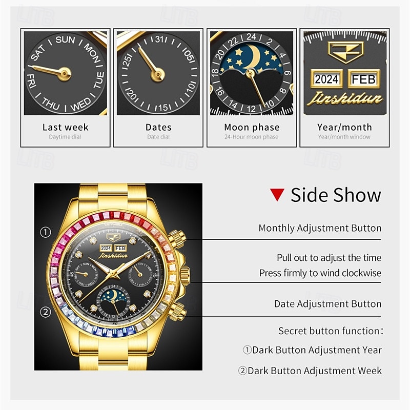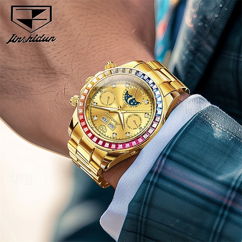 $81.99 - New Men'S Luminous Business Watch Perpetual Calendar Moon Phase Display Colorful Diamond Multi-Function Automatic Mechanical Watch Waterproof Sports Leisure Men'S Watch 2025. Shop for cheap Mechanical Watches online? Buy at lightinthebox.com on sale today!