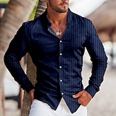 More information about Men's Shirt Dress Shirt Striped Outdoor Casual Blue Dark Green Purple Brown Long Sleeve Turndown Fall & Winter Clothing Apparel Print