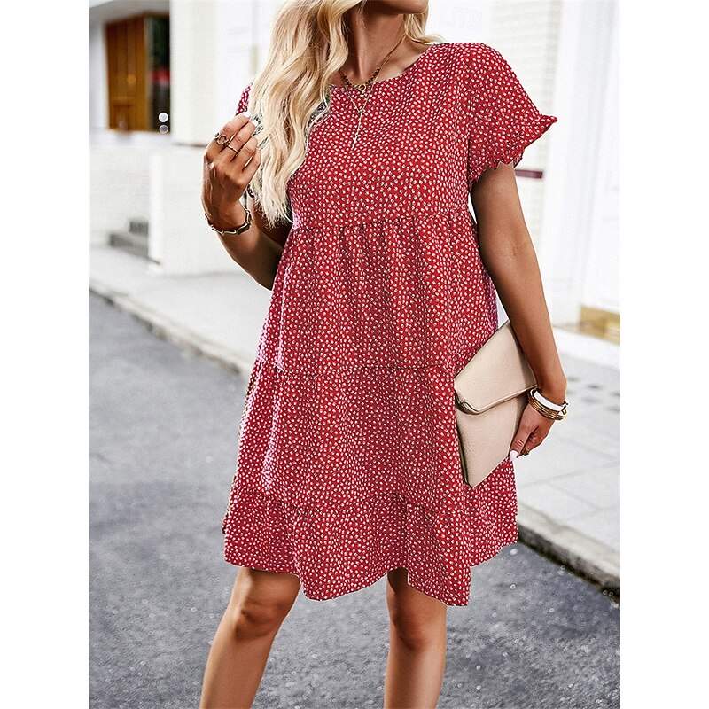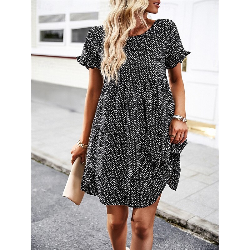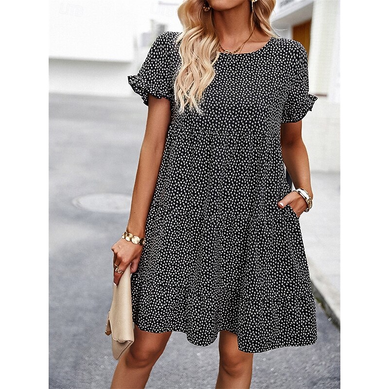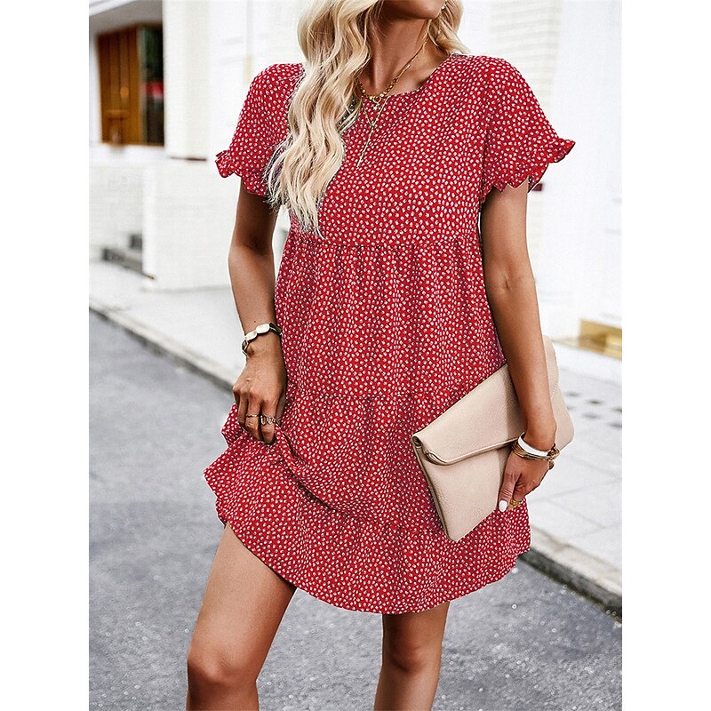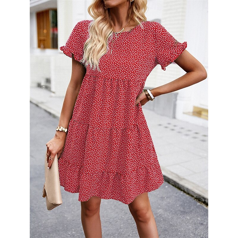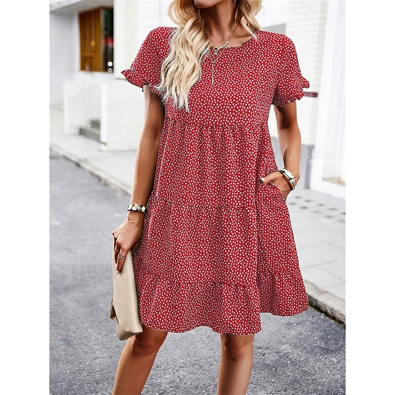 More information about Women's Mini Dress Casual Dress Elegant Stylish Basic Vacation Daily Regular Fit Floral Short Sleeve Crew Neck Black White Red Brown Summer Spring
