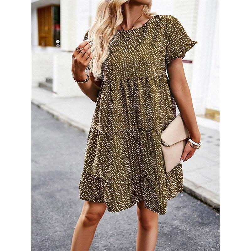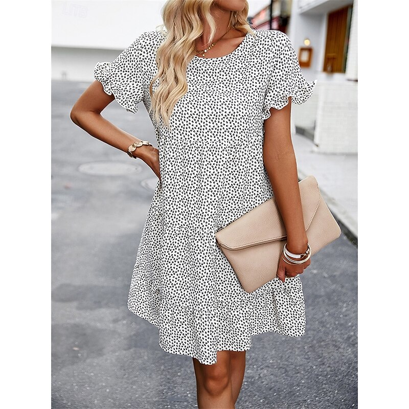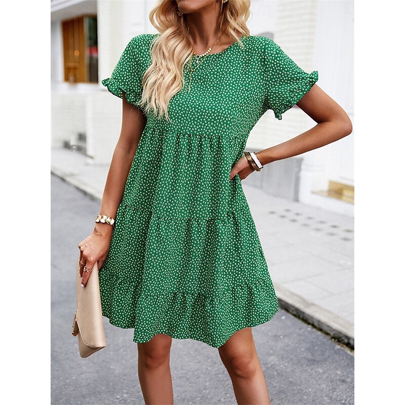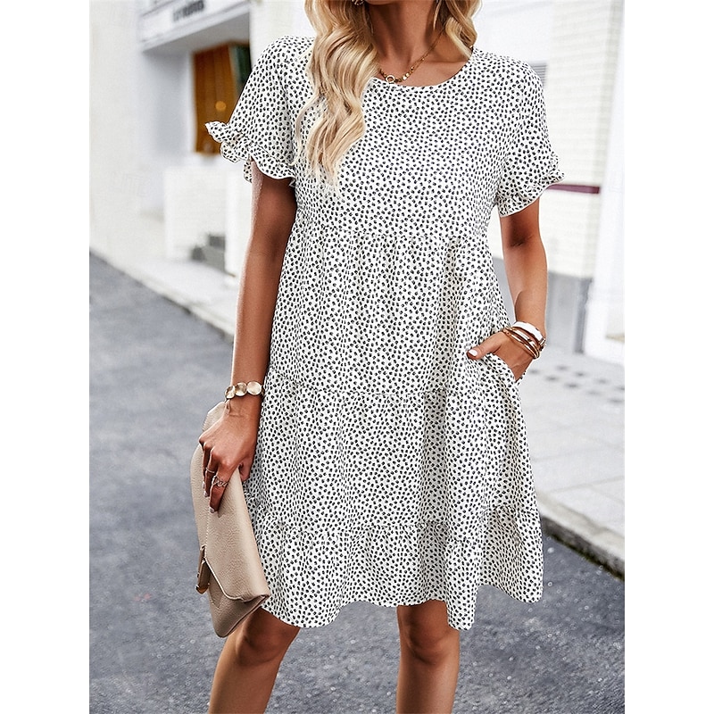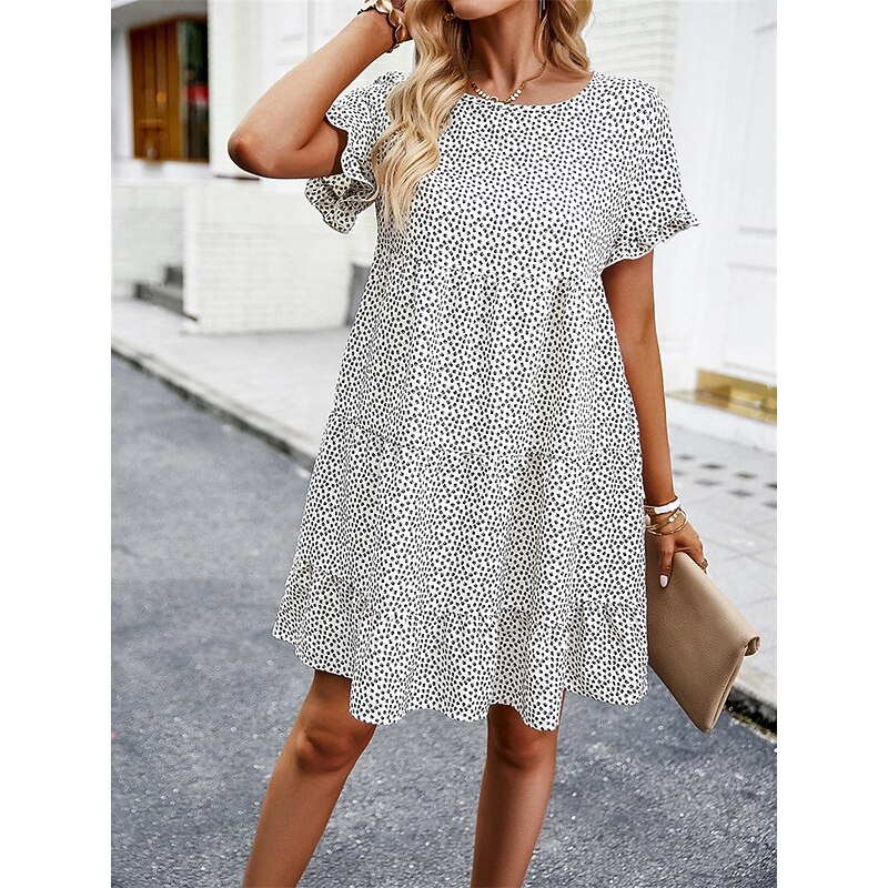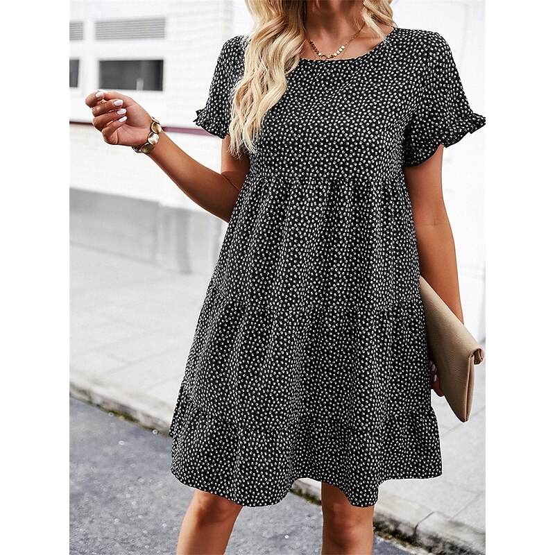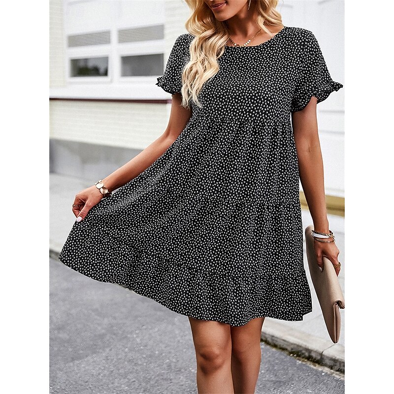 More information about Women's Mini Dress Casual Dress Elegant Stylish Basic Vacation Daily Regular Fit Floral Short Sleeve Crew Neck Black White Red Brown Summer Spring
