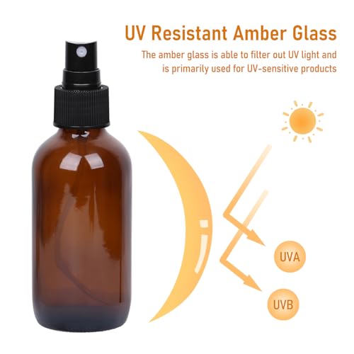 120ml Glass Spray Bottles with Fine Mist Sprayer 24Pack, Small Amber Glass Spray Bottles 4 oz for Perfumes,Cleaning Products,Pet Spray (4fl.oz, Set of 24)