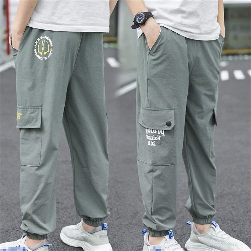 More information about Kids Boys' Pants Cargo Pants Trousers Patchwork Pocket Solid Color Quick Dry Breathable Comfort Pants Outdoor Cotton Daily Basic Black Army Green Khaki Mid Waist