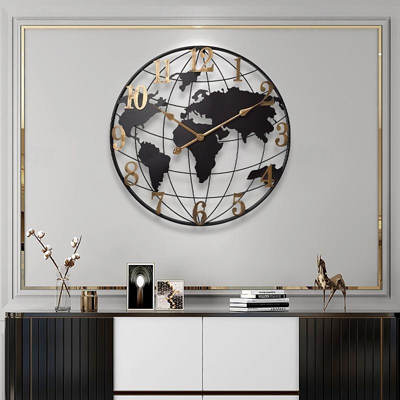 $77.99 - Large Wall Clock World Map Modern Mute Simple Round Iron Design Living Room Corridor Decoration Electronic Clock 60cm 2025. Shop for cheap Wall Accents online? Buy at lightinthebox.com on sale today!