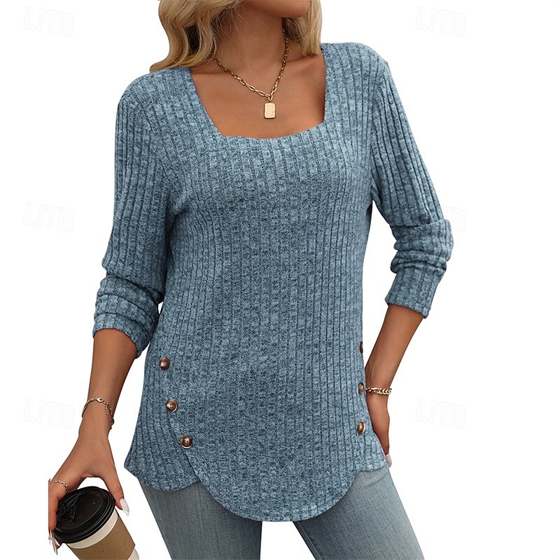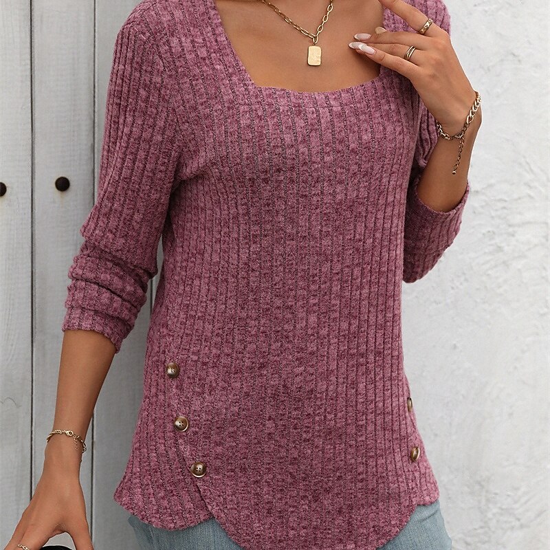 More information about Women's T Shirt Tee Top Plain Elegant Fashion Stylish Long Sleeve Square Neck Regular Tops Daily Weekend Patchwork Black Blue Purple Green off-white Spring Fall Winter