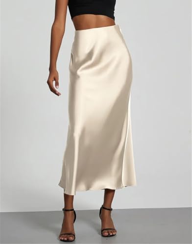 Why Choose Women Summer Spring Long Satin Skirt Silk High Waist Cocktail Party Wedding Flowy A-Line Midi Skirts?