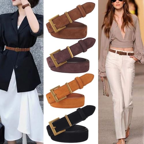 Trouser Dress Belts Versatile Women Luxury Design Business Waist Strap Retro Casual Suede PU Belt (Dark Brown) 4