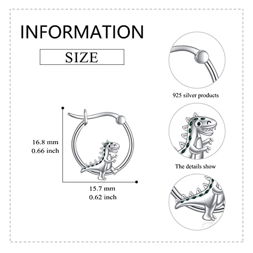 • 🦖Material: Made of S925 sterling silver dinosaur earrings, all part is hypoallergenic, nickel-free, lead-free, and friendly for sensitive ears. High polish finishing and not easy to fade, long time keep bright as new.