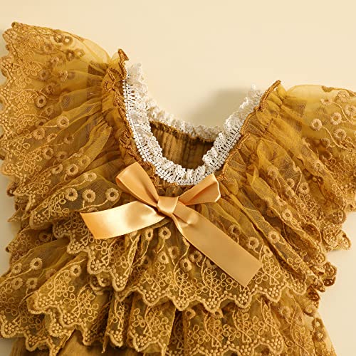 • Features: Flying ruffle sleeve, square neck, low-cut back bowknot lace romper, snap button crotch easy for diaper changing, cute bowknot lace onesie for newborn, layered ruffle lace romper baby girl.