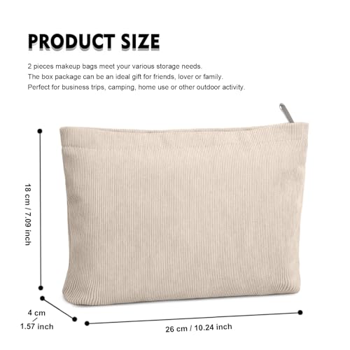 FITDON 2PCS Cosmetic Bags for Women Makeup Bag for Purse Small Corduroy Makeup Pouch Travel Make Up Bag with Zipper Toiletry Bag Organizer 2