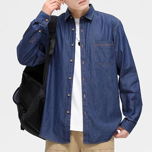 HOT ! Mens Slim Button Lapel Denim Jacket Casual Long Sleeve Washed Jean Coat Motorcycle Biker Jean Jackets (Dark Blue1,4X-Large)