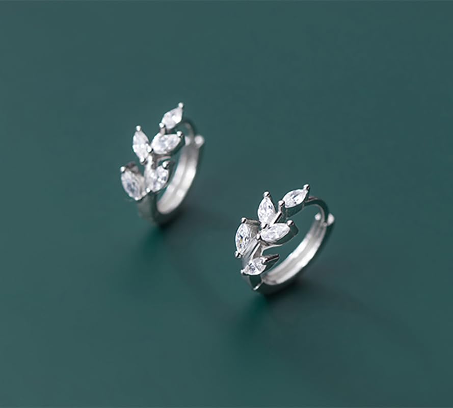 HOT ! Reffeer Solid 925 Sterling Silver CZ Leaf Hoop Earrings Huggie for Women Teens Leaf Cartilage Hoop Earrings Helix Earrings