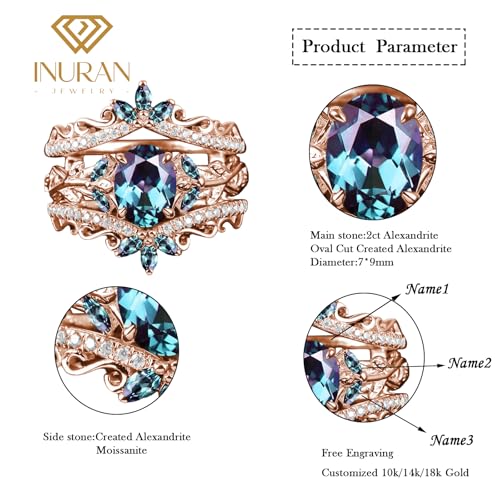 HOT ! 2CT Oval Color-Change Alexandrite Engagement Ring Set for Women Solid 925 Silver/10K/14K/18K Gold Bridal Ring Set Vintage Art Deco Vine Leaf Gemstone Rose Gold Ring Set for Her Unique Gifts