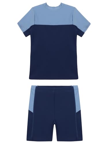 Kids Boys 2Pcs Rash Guard Sun Protection Swimwear Beachwear Short Sleeve Zipper Swim Top and Shorts Set 6
