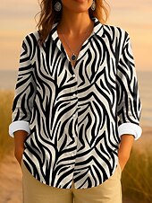 More information about Women's Shirt Button Down Tunic Shirt Collar Long Sleeve Graphic Geometric Striped Vintage Tropical Daily Regular Tops Work Daily s Print Blue Purple Green Khaki Spring