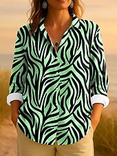 Women's Shirt Button Down Tunic Shirt Collar Long Sleeve Graphic Geometric Striped Vintage Tropical Daily Regular Tops Work Daily s Print Blue Purple Green Khaki Spring 2