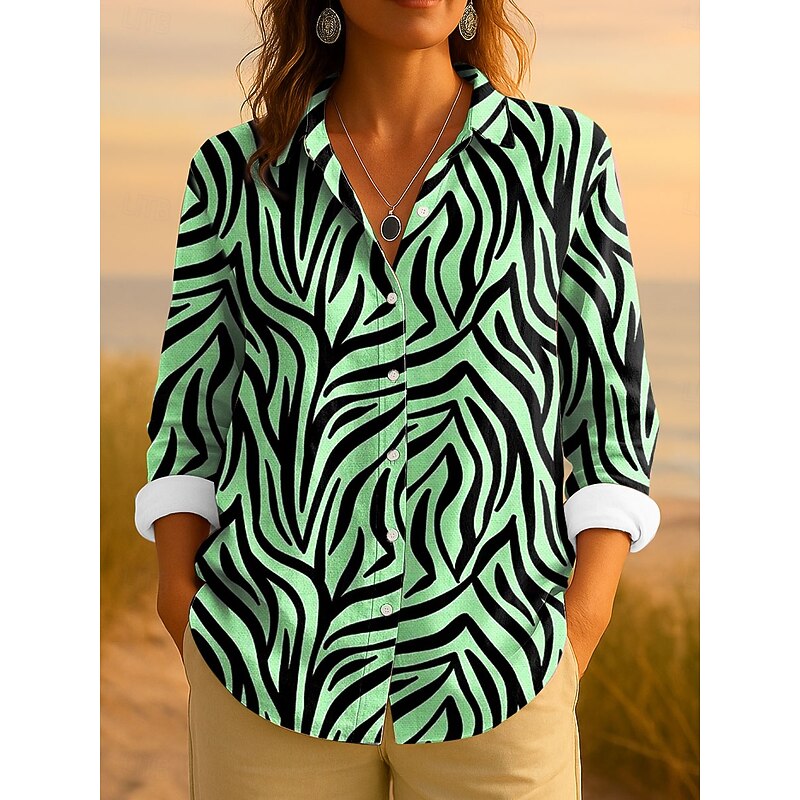 Women's Shirt Button Down Tunic Shirt Collar Long Sleeve Graphic Geometric Striped Vintage Tropical Daily Regular Tops Work Daily s Print Blue Purple Green Khaki Spring 1