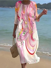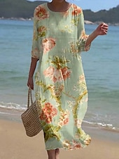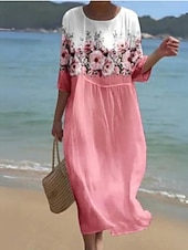 More information about Women's Midi Dress Casual Dress Print Dress Fashion Modern Daily Beach Weekend Regular Fit Floral 3/4 Length Sleeve Crew Neck White Pink Green Spring Fall Autumn