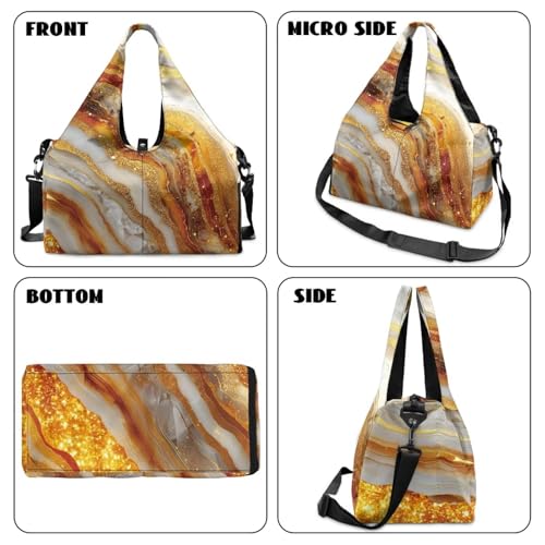 HOT ! GLENLCWE Marble Gym Bag for Men Durable Gym Tote Bag with Shoe Compartments & Adjustable Strap Sports Bag Printed, Golden Sports Duffle Bags for Boys Practice Travel