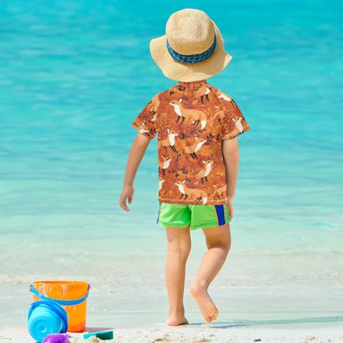 ALAZA Kids Rash Guard Boys Toddler Swim Shirts Short Sleeve Fox Orange UPF 50+ 3T 5